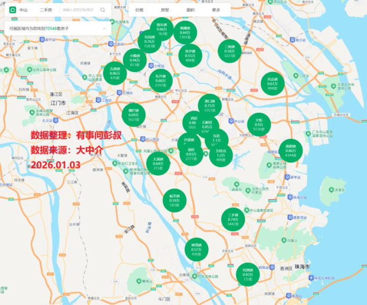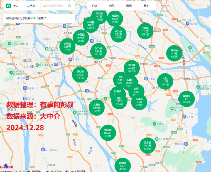 中山楼市现在的待售二手房还在增加,像是南朗镇待售二手房从3350套增加到了4344套。