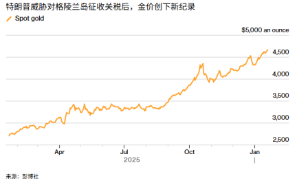 周末,美国总统特朗普直接威胁对欧洲盟国进行一波加征关税措施,直到美国获准购买格陵兰为止,此举使得格陵兰相关问题的纷争升级。周一市场开盘,美国和欧洲股指期货下跌,黄金等避险资产价格上涨,金价逼近4700美元的新纪录高位,白银一度触及每盎司94美元上方的高位,美元兑大多数主要货币走弱。